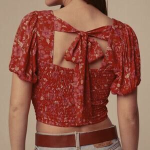 NWT Band of the Free Joelle Floral Smocked Crop Top Sz. L [12] Crimson Pink