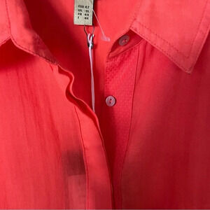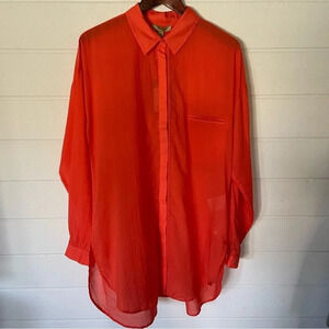 NWT Bandolera Button Down Oversized Orange Cotton Tunic Shirt Size 10