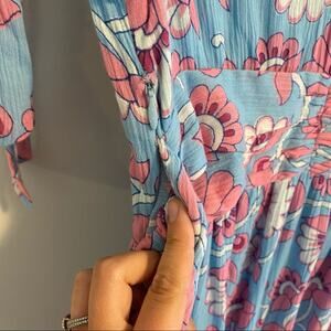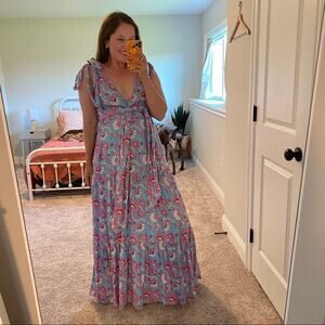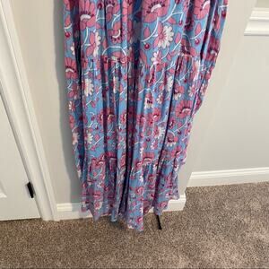 I absolutely adore this super stunning, brand new with tags designer Banjanan cotton carnation sexy maxi dress in the most beautiful blue and pink floral print