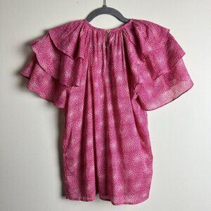 NWT Banjanan Ruffled Andrea Top in Petal Powder Fuchsia Cotton Women's Size XS