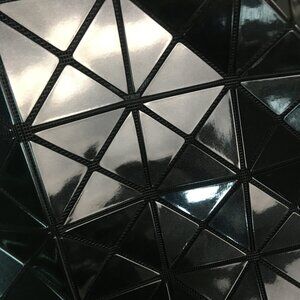 This large carryall bag from the Bao Bao collection features a 3D pris m design. Vinyl geometric shapes bonded on mesh. Adjustable straps. Interior zip pocket.