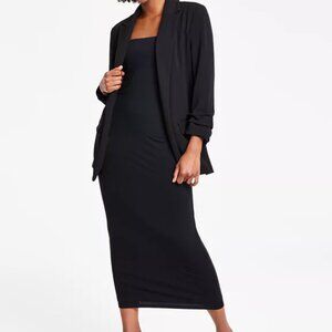 NWT, Bar III, Blazer Notch-Lapel Ruched-Sleeve Open-Front Blazer, Xs, Black
