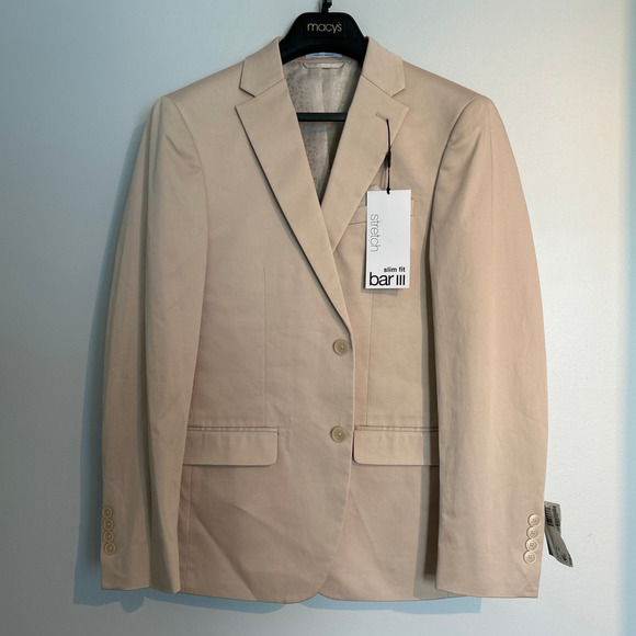 NWT Bar III Slim Fit Stretch Sport Coat Blazer, Tan, Men's 38R