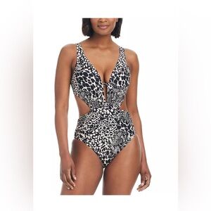 NWT Bar III Women's Printed Plunge-Neck Cut-Out Monokini Large