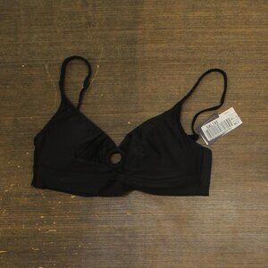 NWT Bar III Womens Resort Solids Ring-Detail Bikini Swim Top MBRS24101 Black M
