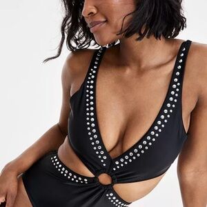 Let your inner bad girl go in this fierce studded monokini with side cut-outs from Bar III®.