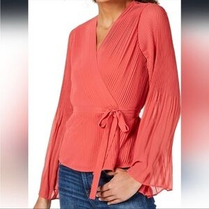 NWT Bar III Wrap Blouse XXS Salmon Orange Pink “Dark Starfish” Bell Sleeves Boho
