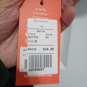 **NWT** BarCo Unisex Black Work, Barber, Scrub Shirt, Top Size M