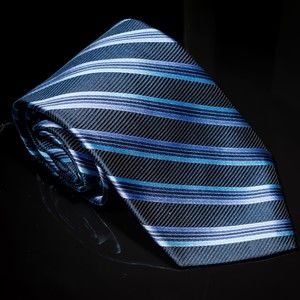 NWT Barbara Blank 100% Silk Tie Navy Purple Multitrack Stripes USA