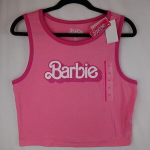 NWT Barbie The Movie Crop Top Shirt XXL Pink Logo Sleeveless Graphic Cute Girly