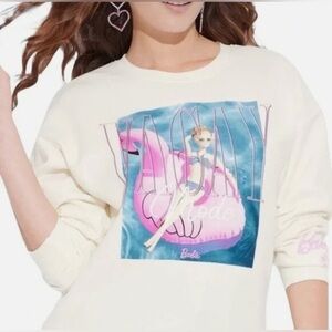 NWT Barbie Vacay Mode ivory sweatshirt XXL pink flamingo float