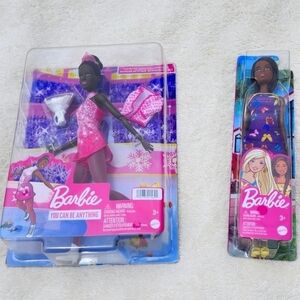 Price for 2 dark skin Barbies. 1 is a beach doll, another one is "You can be anything" - ice-skater.