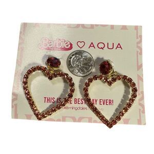 NWT Barbie the Movie Pink Crystal Open heart Earrings in 14K Gold Plated