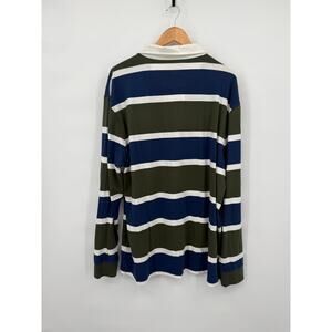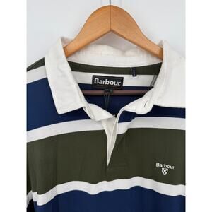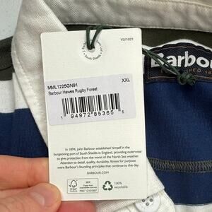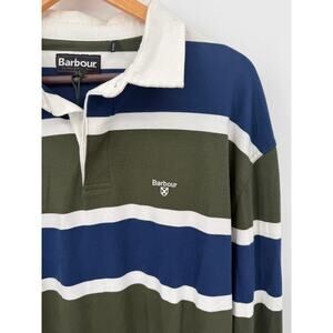 NWT Barbour Mens Hawes Rugby Forest Polo Shirt Long Sleeve Striped Blue Size XXL