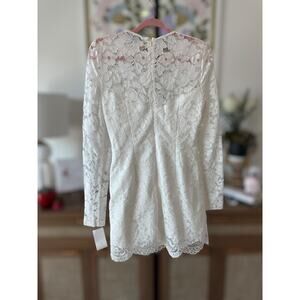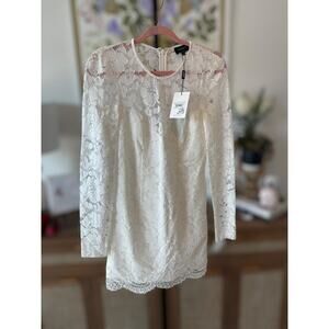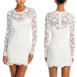 NWT Bardot Breelan Scalloped Hem Sheer Sleeve Lace Mini Dress White Womens Sze 6