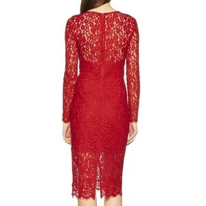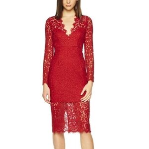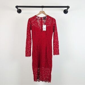 NWT Bardot Midnight Lace Illusion V-Neck Midi Dress in Red