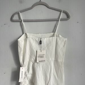 NWT Bardot Zayla linen blend side scrunch slimming sleeveless midi dress sz 4; has a bit of makeup on the front; SEE LICS