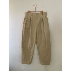 Brand new with tags. Tan colors. Paper bag waist detailing. Loose fit with tapering at ankles and Back zip