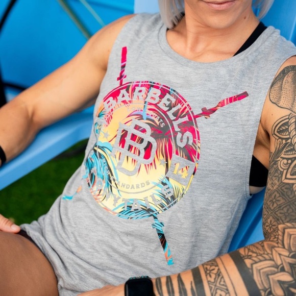 NWT Barebells and Ponytails PALM POWER MUSCLE TANK XL Faded Grey X54