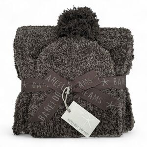 NWT Barefoot Dreams Espresso Cocoa CozyChic Pom Pom Beanie & Scarf Set One Size