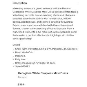 NWT Bariano Georgiana Gown Size 4 White Strapless 3D Flowers Avant Garde Dress