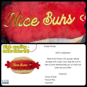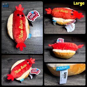 NWT Bark Box Frank Flirter L Dog Toy Large Barkyard BBQ Crinkle Squeak Hot Dog