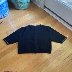 NWT Barney Cheng For Chang Cheng Castaigne black cashmere and silk beaded sweater. Short sleeved and cropped.