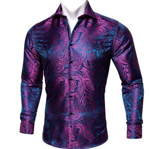 NWT Barry.Wang Silk Blend Blue Pink Paisley Long Sleeve Button Down Size M