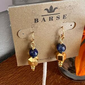 NWT Barse Genuine Stones Drop Earrings Blue and Gold #BER