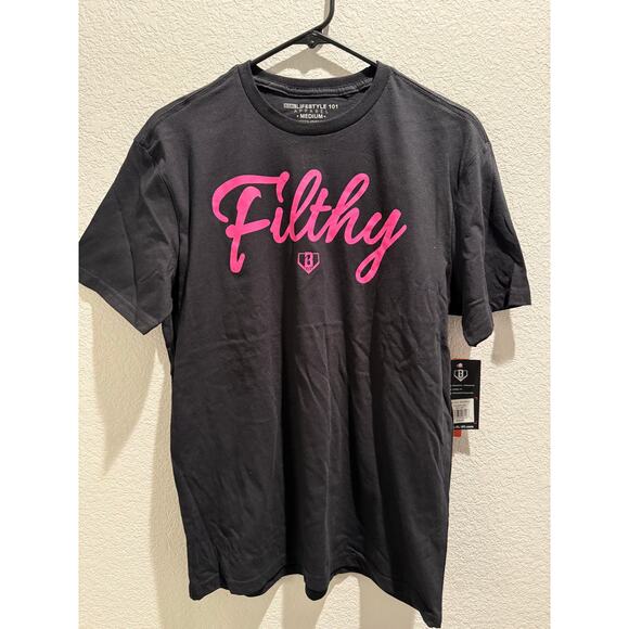 Step up your streetwear and baseball style with this brand new, never-worn Baseball Lifestyle 101 graphic tee. Features the iconic “Filthy” script in bold pink lettering with the BL101 logo beneath. Soft cotton fabric, classic fit, and a clean black base make it easy to pair with joggers, jeans, or game-day outfits.