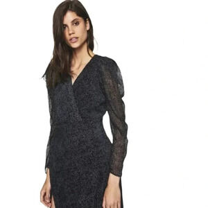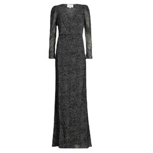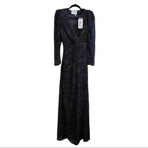 NWT Ba&sh Charlie Burnout Velvet Silk Maxi Dress in Black Puff Sleeve Size: XS
