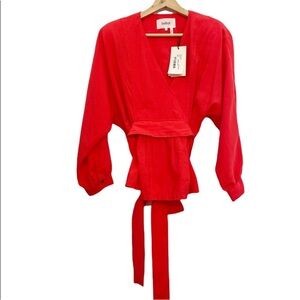 NWT Ba&sh Cola Wrap Top Crepe De Chine Blouse in Vermillion Size 2