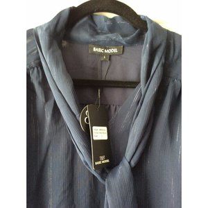 NWT Basic Model Long Sleeve Navy Blouse - Large
