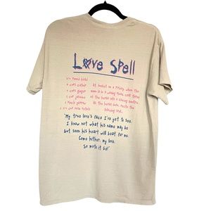 Rare Hole band tee imported from the UK. Featuring "Pretty on the Inside" graphics on the front and a love spell graphic on the back. Relaxed fit. Shirt has a worn, vintage feel, with intentional pilling throughout. Really cool and unique addition to any grunge lover's wardrobe.
