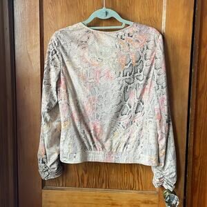 NWT Basler Vegan Suede Rouched Snakeskin Print Bomber Jacket