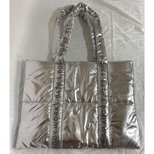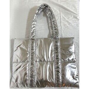 NWT Bath & Body Works 2024 Black Friday Large Silver Shiny Puffer Tote Bag