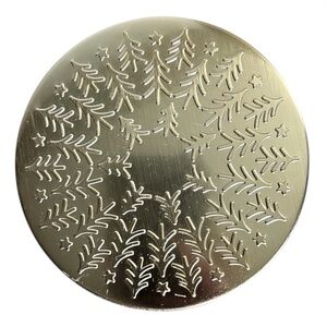 Has the decorative gold holiday lid and winter label (cat in window)