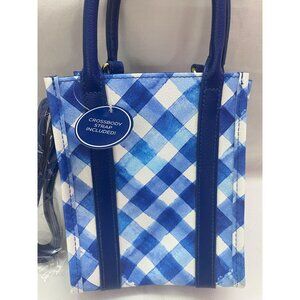 NWT Bath and Body Works Blue Gingham Small Tote/Crossbody Bag w detachable Strap.