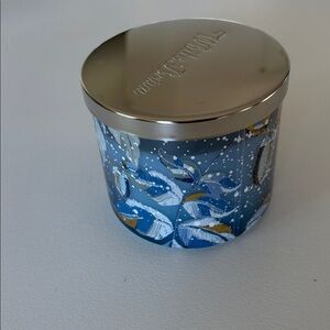 NWT Bath and Body Works White Barn Winter 3 Wick Candle with Box Cozy Blue Snow
