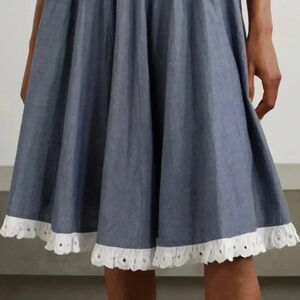 NWT Batsheva Shirley Broderie Anglaise Cotton-Chambray Skirt 6