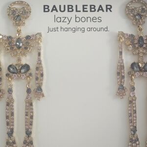 New with tags/New in box- Baublebar viral full body skeleton crystal drop earrings featuring iridescent glass stones in light pink, black, gray and white with gold trim and hinges. Perfect affordable version of the Baublebar 'Bone-A-Fide' Hottie earrings which are pictured in the stock image. Earrings measure 3.25 inches length with a push back closure for all day comfortable wear. The drop design allows different parts of the skeleton to move freely for a perfect conversation starter!
