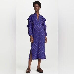 NWT Baum Und Pferdgarten Ahadi Long Sleeve Ruffle Midi Dress 36 Blue Floral