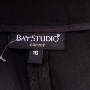 Brand New with Tags (NWT) Bay Studio Black Career Classic Pants, Women's Size 16. These elegant and comfortable dress pants feature unique beaded embellishments and a stylish chevron pattern on the waistband, perfect for office wear or a sophisticated casual look.