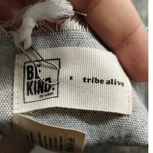 NWT Be Kind by Ellen Tribe Alive Upcycled Denim Scarf Fringe Coastal Handmade