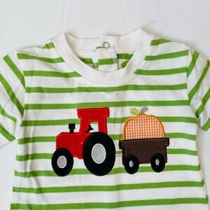 #bemine #pumpkin #tractor #green #stripes #romper #applique #new #nwt #giftit #babyshower #fall #winter