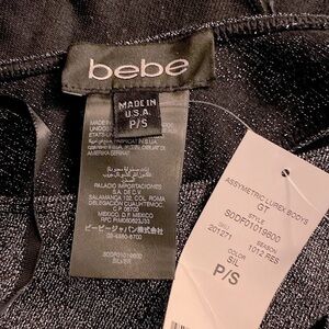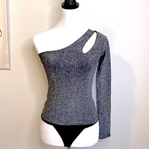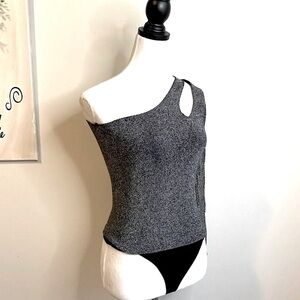 NWT BeBe Asymmetrical One Shoulder Silver & Black Metallic Bodysuit Size Small