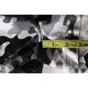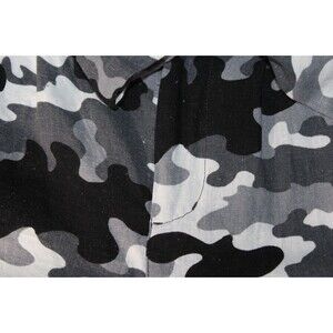 Bebop Brand Tagged a size Large Waist measures 16" across when laying flat and unstretched. Back has elastic Black and gray Camo pattern Linen and Rayon Blend New with tags Has fabric belt