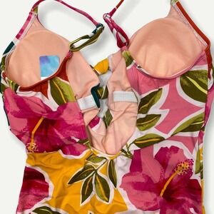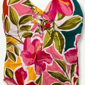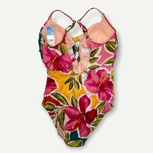 NWT Beach Betty By Miracle Brand One Piece Swimsuit Floral Tropical Tie Front