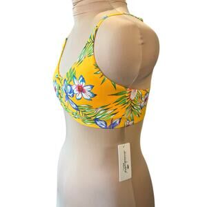 NWT Beach Joy Bikini Swim Top Size Medium Yellow Floral Adjustable Straps