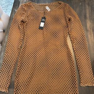 NWT Beach What Fishnet Cover Up Dress - Mocha-Size Small. Pit to pit 15.5”. 33” long. 26” sleeves.